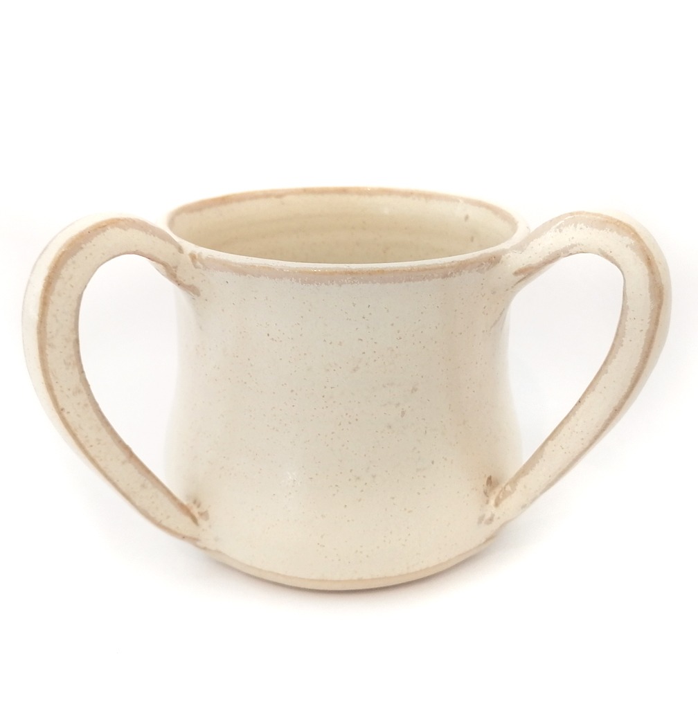 Arricchisci il rito del lavaggio delle mani con questa vivace tazza Netilat Yadayim, realizzata a mano con grande attenzione ai dettagli. Le due maniglie sono progettate secondo la tradizione ebraica per evitare che la mano già purificata venga "contaminata" durante il versamento dell’acqua sull’altra.