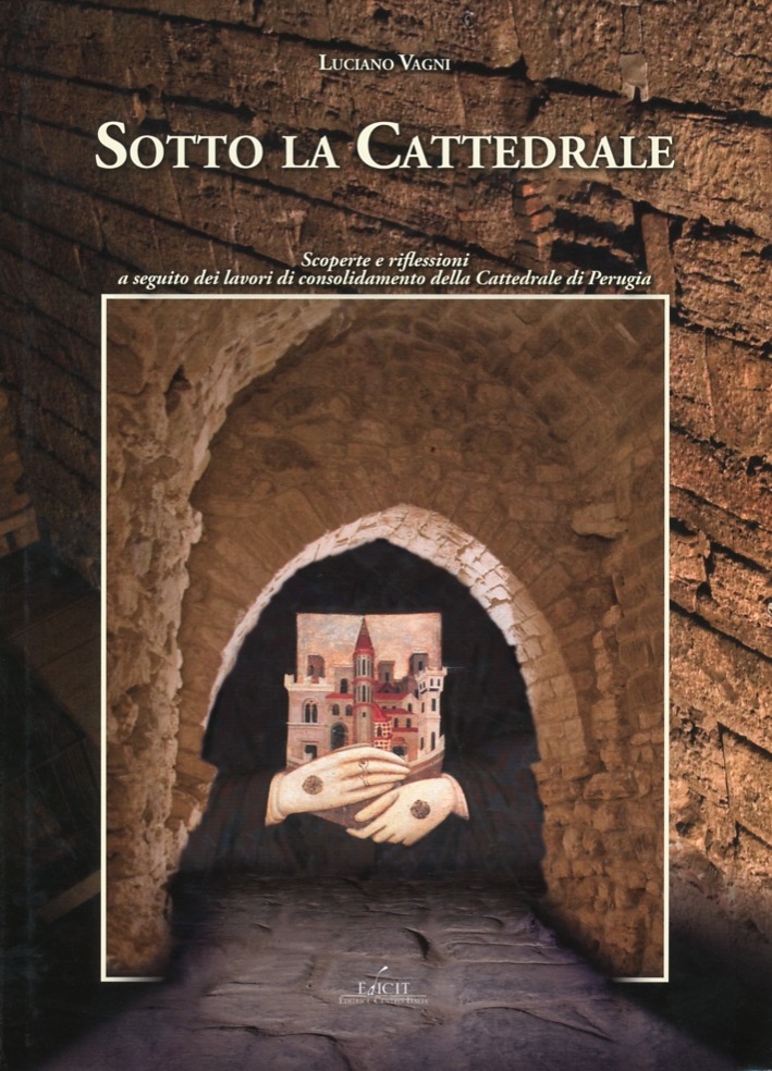 I lavori di consolidamento effettuati nella Cattedrale perugina e nei locali attigui hanno riportato alla luce uno scenario sorprendente, con ritrovamenti che risalgono alla Perugia etrusca, con le sue fondamenta e i suoi pozzi, a quella romana e a quella bizantino-romanica. Nell'arce perugina, laddove si trova ora il chiostro superiore della cattedrale si trovava un grandioso santuario etrusco, che si estendeva fin sotto l'abside. A valle del santuario, correva una strada etrusca della larghezza di quasi quattro metri, ritrovata perfettamente integra poiché rinterrata nella fase di risistemazione urbanistica effettuata dal dominio di Roma repubblicana. Sulla base del modello celeste seguito dagli Etruschi per la costruzione della città, l'autore è riuscito a determinare la posizione delle porte, dei templi, delle postierle dei morti, riscontrando inoltre singolari coincidenze geometriche.
