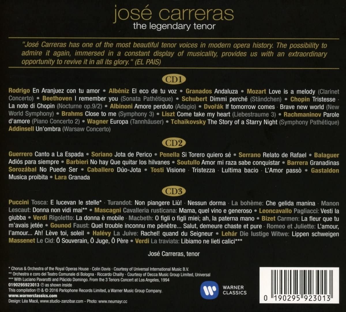 Box di 3 CD che celebra i 70 anni di una tra le più belle voci tenorili nella storia dell'opera moderna secondo El Pais: Josè Carreras. Raccolta delle maggiori interpretazioni del leggendario Tenore tra le quali troviamo: Tristesse. Le note di Chopin (Nocturne op.9/2), Brave New World (Dvorak), Granda (Lara), fino ad arrivare ai brani più celebri delle grandi opere liriche: E lucevan le stelle (Tosca – Puccini), Che gelida manina (La Bohèmen – Puccini), La donna è mobile (Rigoletto – Verdi), La fleur que tu m'avais jetée (Carmen – Bizet) e tanti altri.