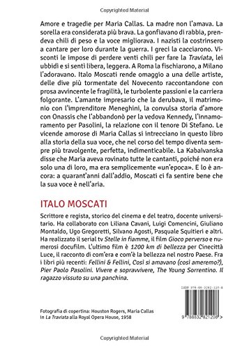 Amore e tragedie per Maria Callas. La madre non l'amava. La sorella era considerata più brava. La gonfiavano di rabbia, prendeva chili di peso e la voce migliorava. I nazisti la costrinsero a cantare per loro durante la guerra. I greci la cacciarono. Visconti le impose di perdere venti chili per fare la "Traviata", lei ubbidì e si sentì libera, leggera. A Roma la fischiarono, a Milano l'adoravano. Italo Moscati rende omaggio a una delle artiste, delle dive più tormentate del Novecento raccontandone con prosa avvincente le fragilità, le turbolente passioni e la carriera folgorante. L'amante impresario che la derubava, il matrimonio con l'imprenditore Meneghini, la convulsa storia d'amore con Onassis che l'abbandonò per la vedova Kennedy, l'innamoramento per Pasolini, la relazione con il tenore Di Stefano. La Kabaivanska disse che Maria aveva rovinato tutte le cantanti, poiché non era solo una di loro, ma era semplicemente "un'epoca".