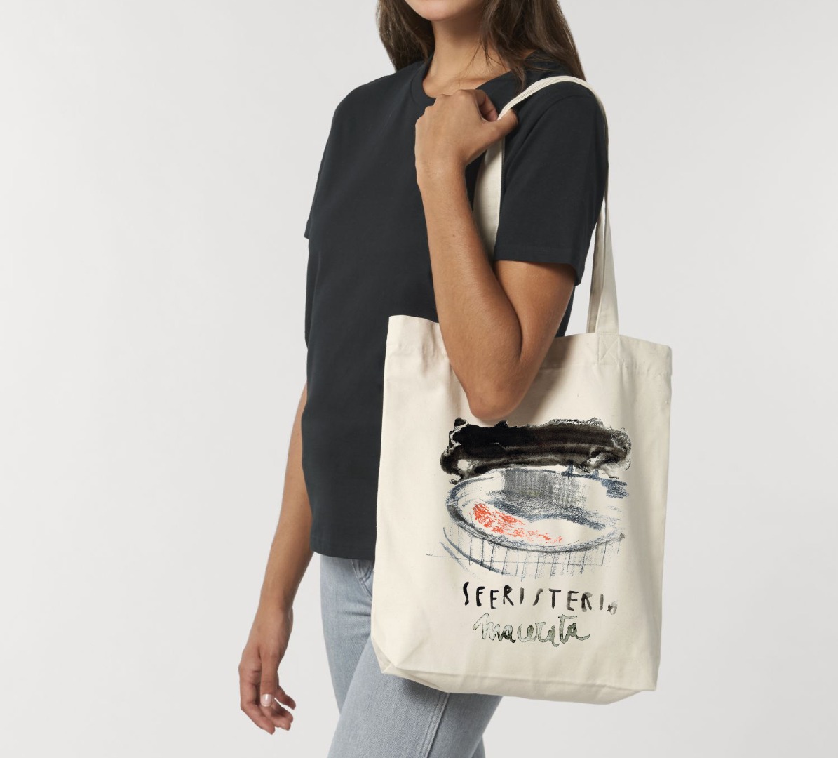 Shopper in cotone organico con illustrazione esclusiva dello Sferisterio, realizzata da Francesca Ballarini. Pratica e resistente, è perfetta per l’uso quotidiano e per portare con te tutti i tuoi oggetti essenziali con stile.